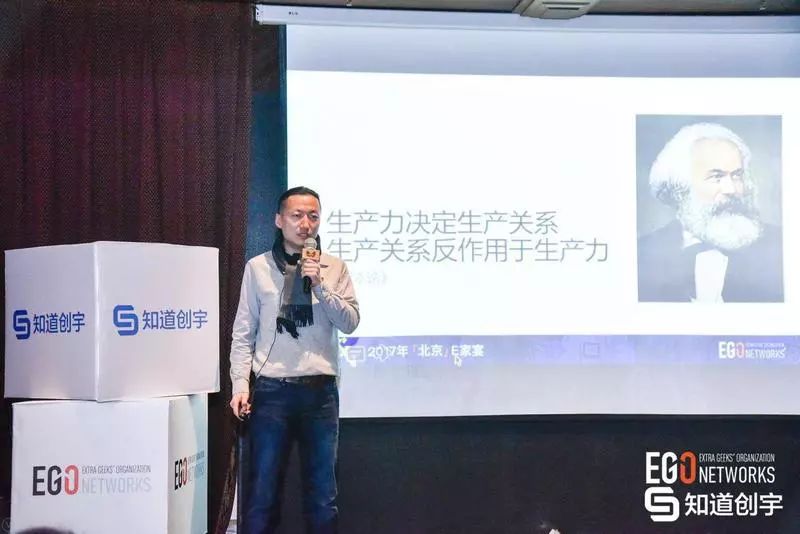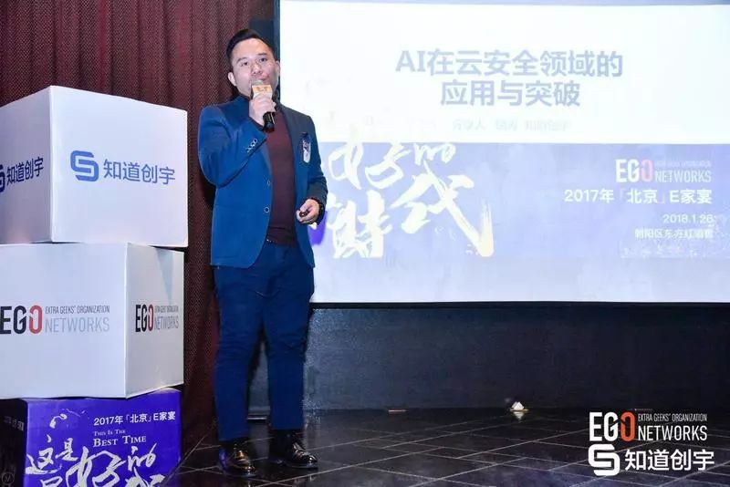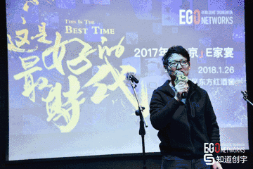 娱乐过后,EGO 北京分会十二组组长、知道创宇技术 VP 李伟辰,首先代表晚宴独家赞助商 —— 知道创宇致辞。在过去的一年里,李伟辰从未缺席过任何一场线下活动。他表示:虽然在 EGO 大家行业背景、经验、阅历都不同,但每次交流都能收获很多,十分庆幸能跟大家一起参与到中国的蓬勃发展中。最后,李伟辰总结到:2017年,很多行业都遇到了困难。虽然监管和市场形势的变化让人措手不及,但同时也催生了不少新的热点。2018年,同样是不平凡的一年,挑战与机遇始终并存。