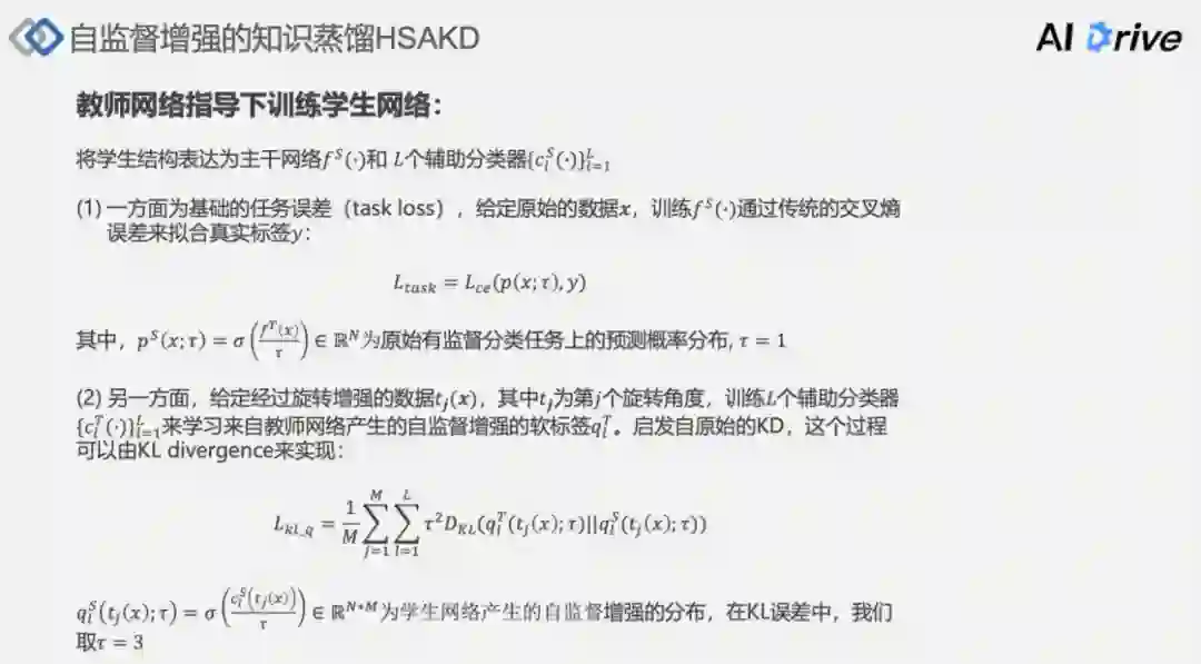 HSAKD 在教师网络和学生网络对应层次上的辅助分类器,进行一个单向的自监督辅助的知识蒸馏。