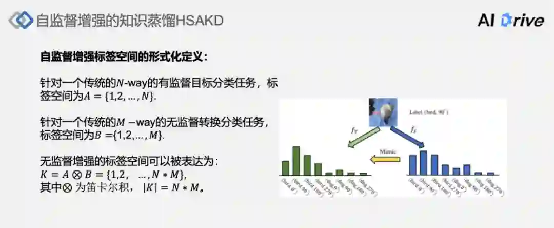 1. 知识定义:引导了一个分类网络上的辅助结构来产生自监督增强的概率分布,该分布包含了原始有监督的分类任务和无监督任务的联合知识;