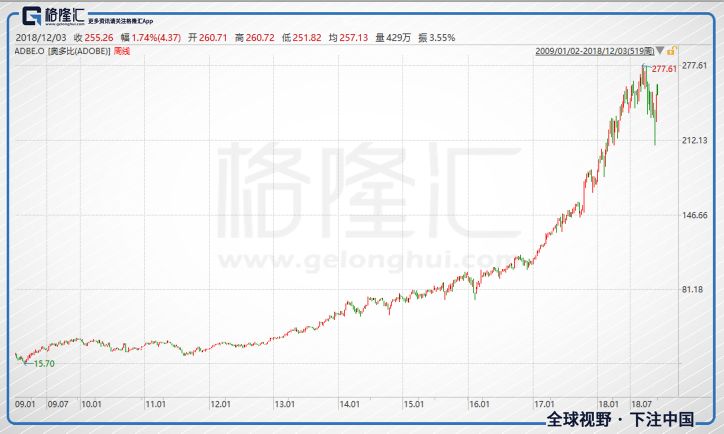 这可能是选择科技股的另一种思路,奥多比(PS软件是他家的)和微软(office)各自的产品基本处于垄断地位,而且其工具的本质就是“提高效率”,只要推广出去,用久了自然会形成非常高的转移成本,用户粘性极高。而且两者的云转型都非常成功,现在看来可能美股市场对于这种云转型成功,稳定增长的2B型科技公司可能更加青睐。