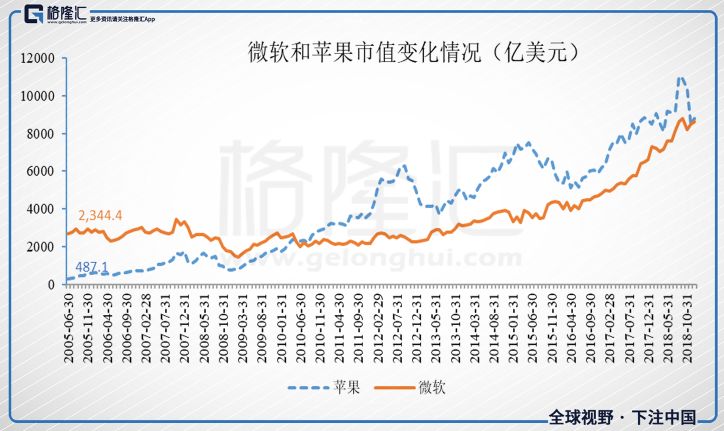 微软和苹果这一对出生的比较早,微软成立于1974年,苹果是1976年,一同走过了PC时代、互联网时代、移动互联网时代,这么多年也算是相爱相杀。