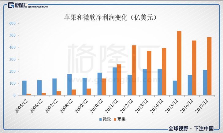而2005-12年间,微软也只是不断推出更高版本的Windows和Office,但除此之外基本没有其他任何产品线上大的突破。而苹果当时已经靠着iPod和iTunes大杀四方了,之后又推出了iPhone这个神器,直接进入移动互联网时代。而微软在移动领域也未能占得先机,完全输给谷歌和苹果,2011年之后苹果的利润就超过微软了。