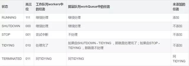 TERMINATED:线程池彻底终止的状态。