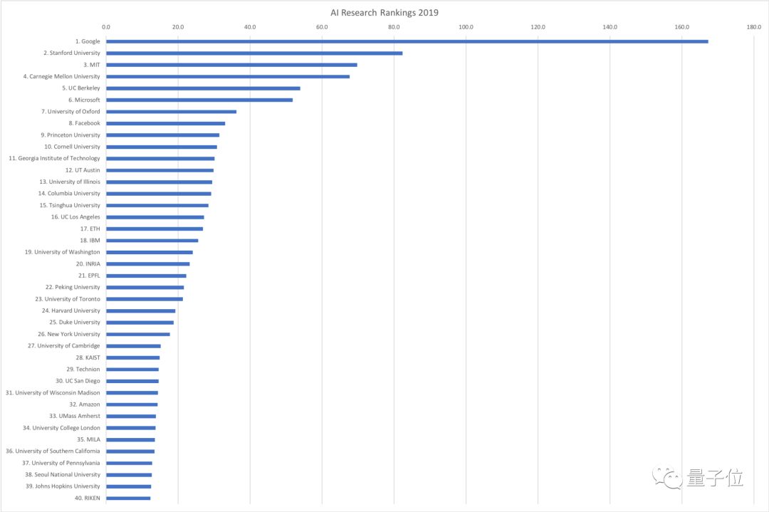 2019年人工智能研究领先的全球前40大组织(工业与学术界)