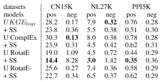 半监督样本也是通过替换训练集中三元组的头实体或者尾实体来构造,但是每个半监督样本都会计算置信度分数而不是置0。半监督样本的MSE损失如下: