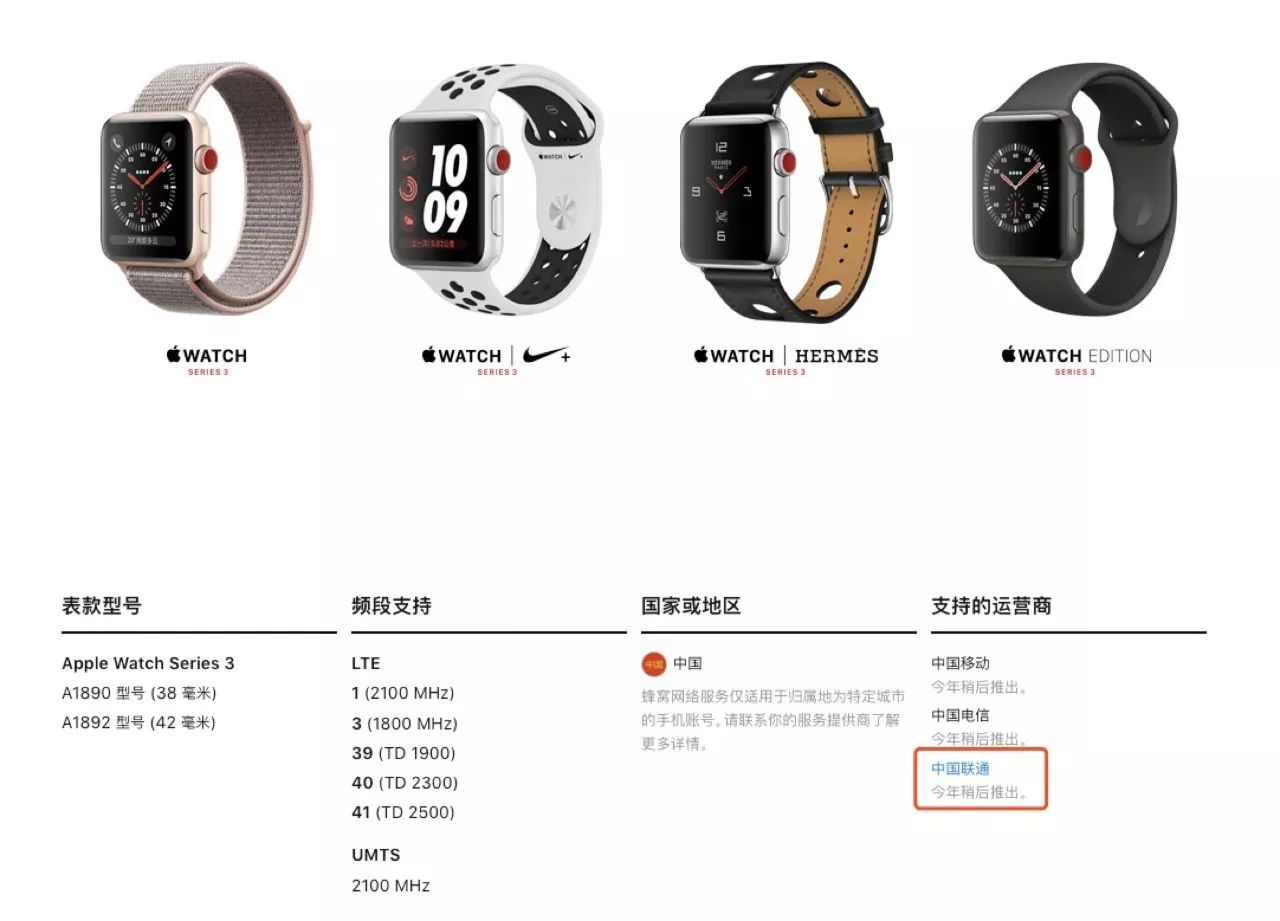 在 9 月 12 日的苹果发布会上,苹果推出了 Apple Watch Series 3 蜂窝网络版,不过日前,苹果和联通在苹果官网上已经宣布了推迟蜂窝网络服务到今年稍后的时间推出。其原因可能是国内首次提供“旧号 e-SIM 卡”的服务,导致出现号码无法被呼叫打入的情况。