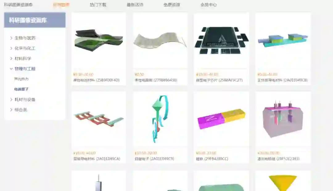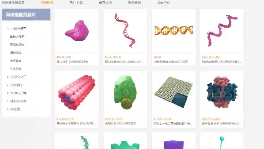 并且提供.png、.jpg、.psd、.eps(二维图像)、.max、.mb、.obj(三维模型)七种素材格式,为科研绘图提供了极大的便利。