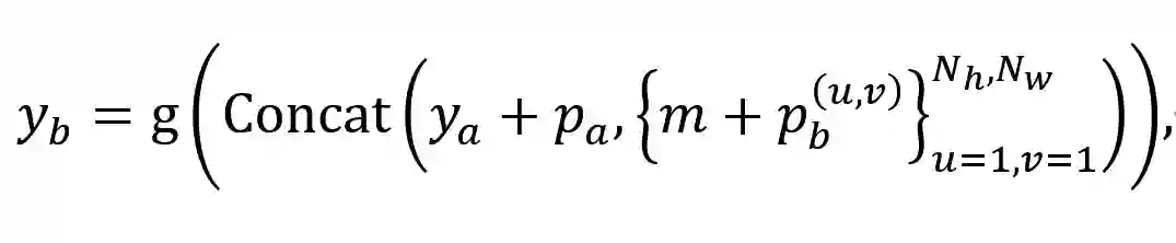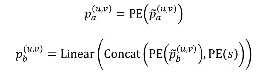 其中,p_a 是第一张视图 x_a 的位置编码,p_b^((u,v) ) 对应第二张视图 x_b 在 (u,v) 处的图块的位置编码,它们会在下文介绍。