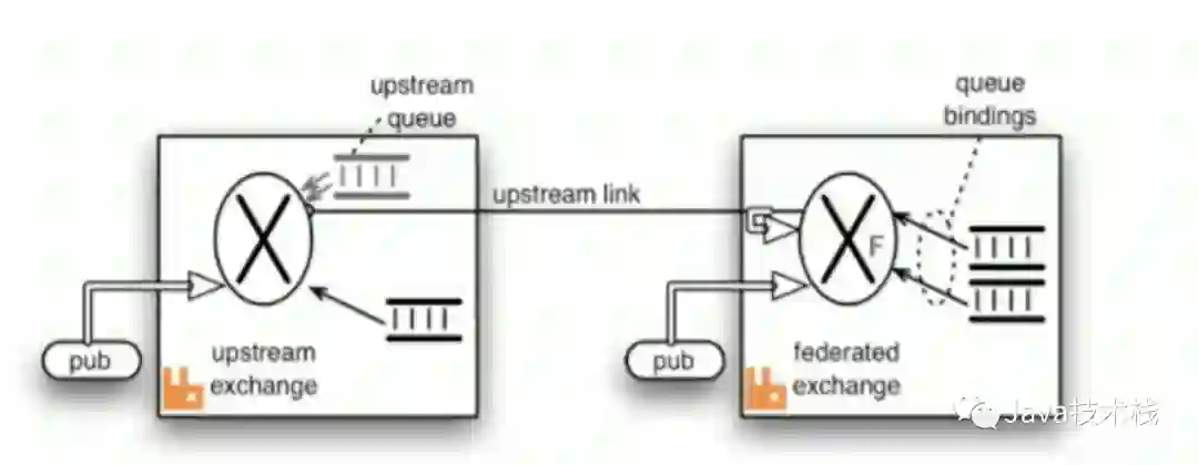 Federation Exchanges,可以看成Downstream从Upstream主动拉取消息,但并不是拉取所有消息,必须是在Downstream上已经明确定义Bindings关系的