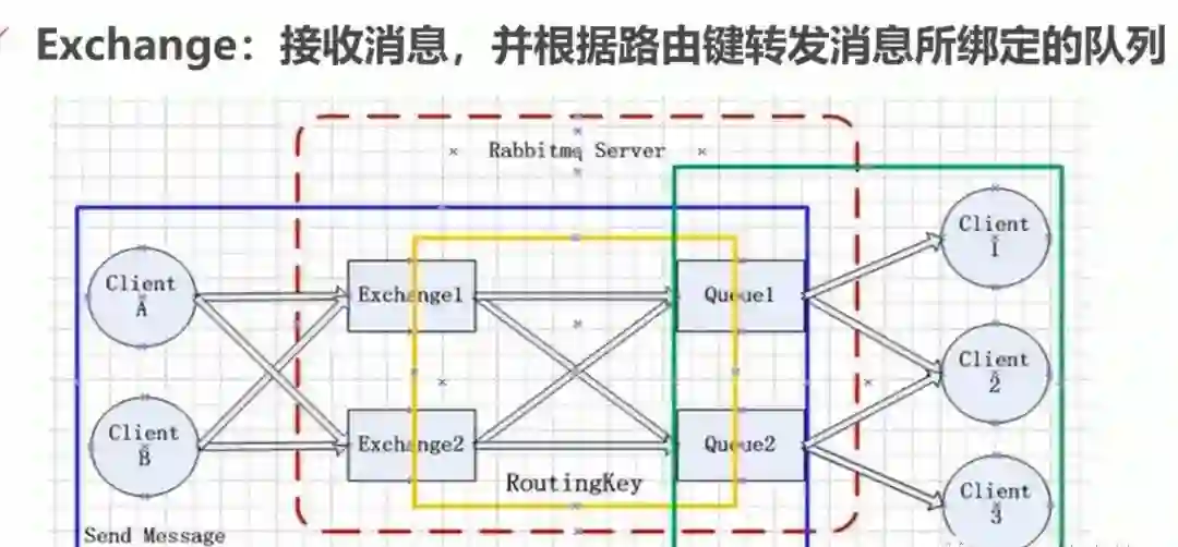 Exchange:交换机,接受消息,根据路由键转发消息到绑定的队列上。