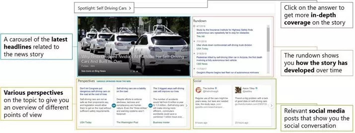 作为公民拥有广泛知情权,尤其是新闻,互联网世界发展到如今比以往更具挑战性,除了政治因素,技术上的公允、不偏颇并有效、快速提取是团队更大的挑战,Bing团队的目标是为具有广泛影响力的现象级新闻事件提供更丰满的故事背景,让读者明白来龙去脉,不论事关政治、商业或者是重大灾难,让新闻的可读性更强。