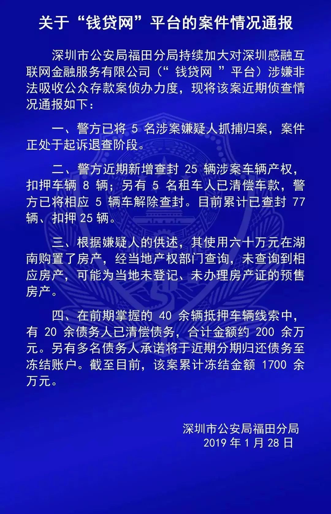 另外,关于“钱贷网”的案情通报如下: