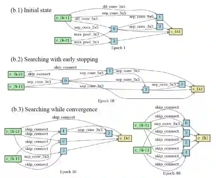 值得一提的是,近来的一些基于 DARTS 改进的算法其实也隐式地使用了早停的想法。