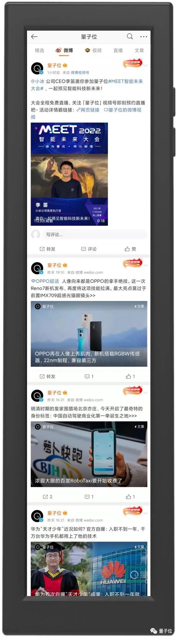 这款屏幕最高分辨率是420x1920……算了,文字描述不出它的野性,不如来直接体验一下,拿它刷微博是种什么感觉: