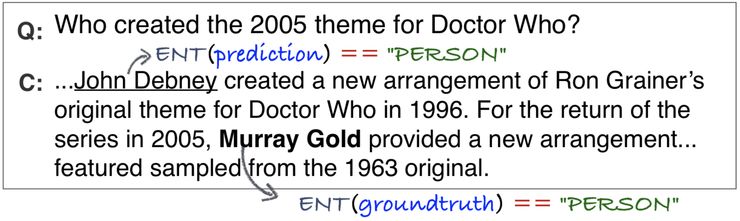 在这个出自 SQuAD 数据集的例子中,加粗字体的 Murray Gold 创作了《Doctor Who(神秘博士)》的 2005 特别篇。