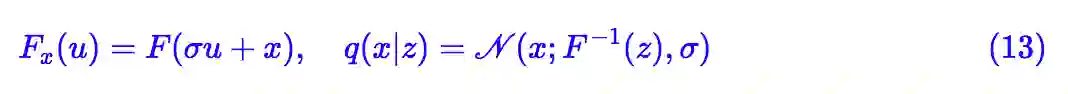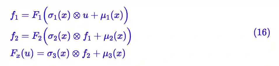上面两个特例表明,式 (6) 原则上包含了 VAEs 和流模型。 Fx(u) 实际上描述了 u, x 的不同的混合方式,原则上我们可以选择任意复杂的 Fx(u) ,来提升后验分布的表达能力,比如: