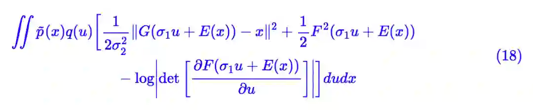 其中 σ1,σ2 都是待训练参数(标量即可),E(⋅),G(⋅) 是待训练的编码器和解码器(生成器),而F (⋅) 是参数与 x 无关的流模型。代入 (6),等效的 loss 为: