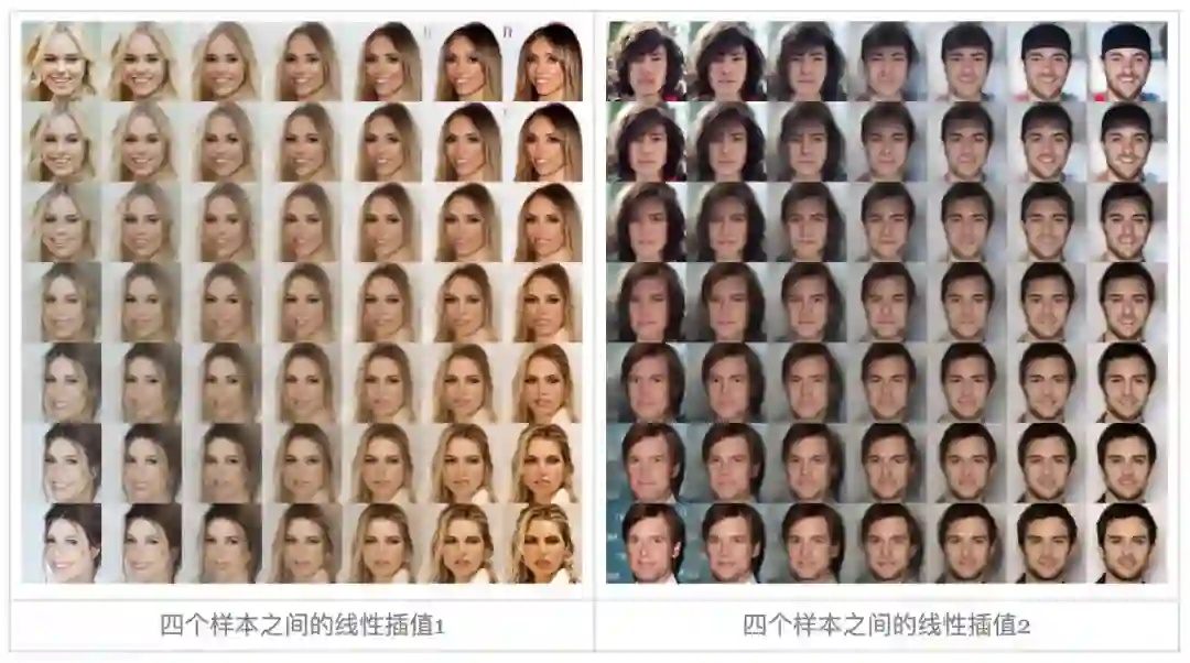 ▲ 由f-VAEs实现的两个真实样本之间的线性插值