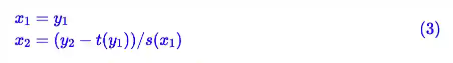 而在流模型中,q(x|z)=δ(x−G(z)),并精心设计 G(z)(通过流的组合)直接把这个积分算出来。流模型的主要组件是“耦合层”:首先将 x 分区为两部分 x1,x2,然后进行如下运算:
