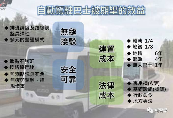 第三相比轻轨与地铁,无人驾驶巴士研发周期短、研制成本和立法成本更低。