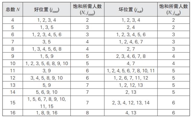 表20.1 根据便池总数不同,可算出好位置和坏位置
