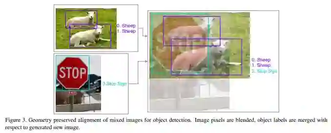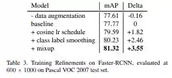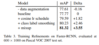 Figure3是在目标检测算法中使用mixup的例子,合并之后的图像标签包含2张输入图像的所有标签,可以看出这种思想在实现上还是比较容易理解的。