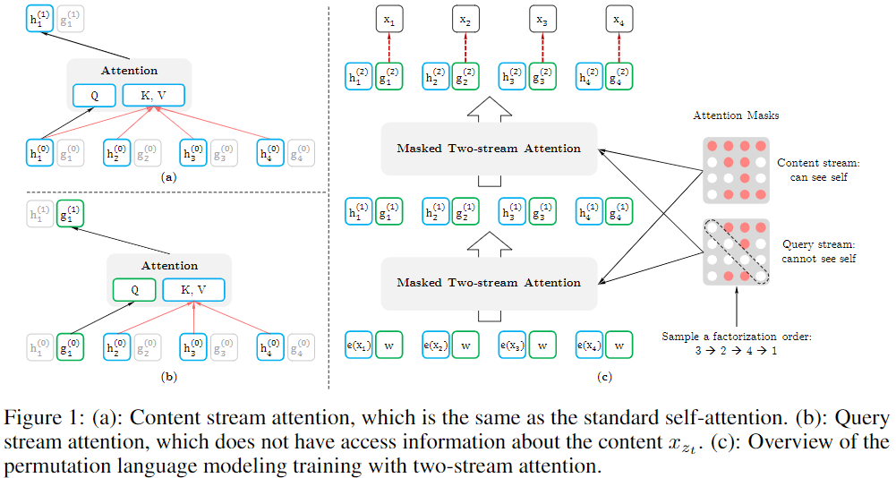 采用自回归(AR)模型替代自编码(AE)模型,解决mask带来的负面影响;双流自注意力机制;引入transformer-xl,解决超长序列的依赖问题;采用相对位置编码