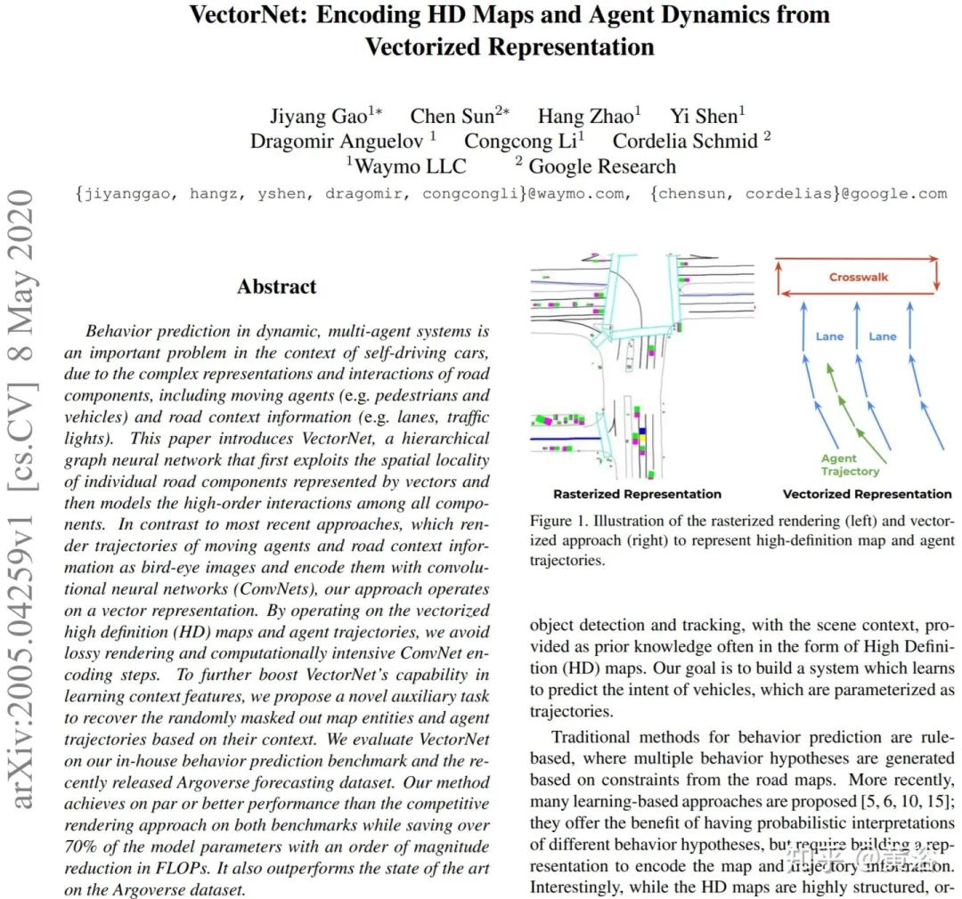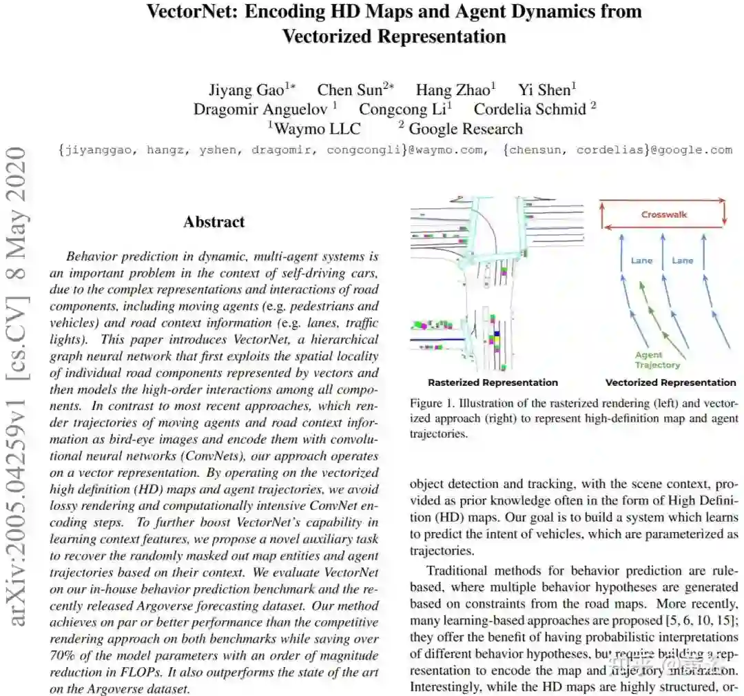 arXiv上面谷歌的最新论文“VectorNet: Encoding HD Maps and Agent Dynamics from Vectorized Representation”。