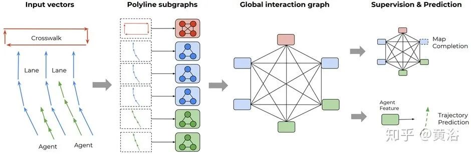 折线子图网络(polyline subgraph network)可以看作是3D PointNet的概括。但是,将排序信息嵌入矢量、基于折线分组约束子图的连通性以及将属性编码为节点特征,该方法更适合于编码结构化地图标注和代理轨迹。