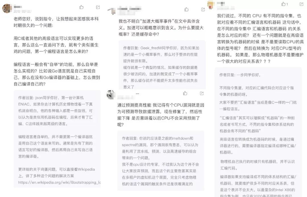 比如,专栏特色之二:每个章节都会留个符合内容的思考题,徐文浩老师经常在评论里解答,这种耐心、负责的分享精神,真的很难得了。