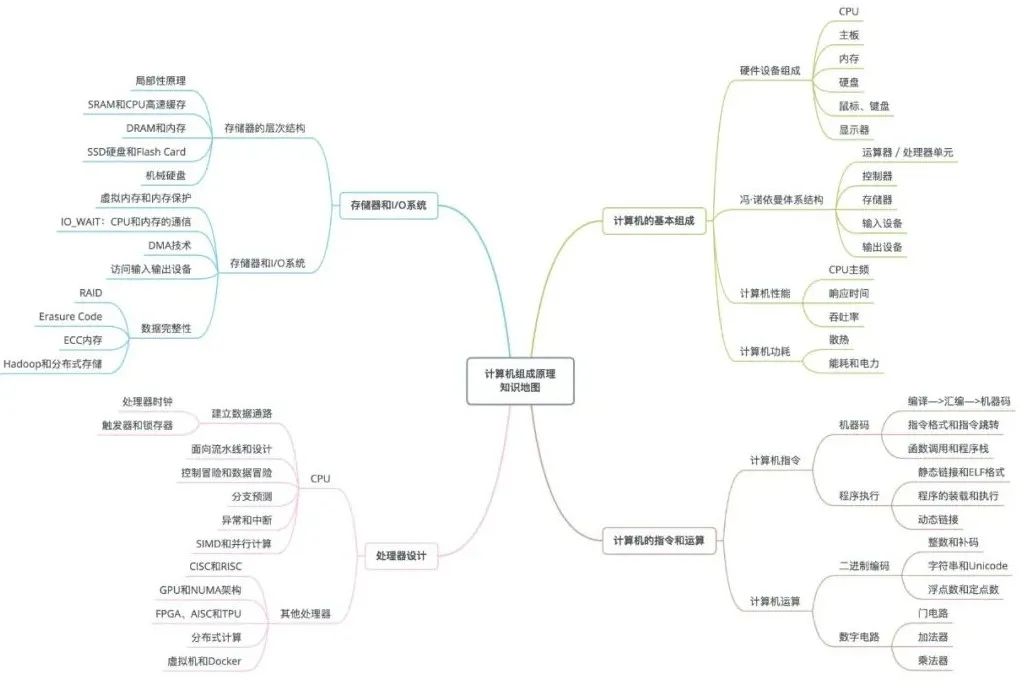 只啃原理不行的,还是要与实际代码工作相结合,在这我分享一份,之前收藏的学习资料 —— 「组成原理全景图」,把零散的概念系统地整理在一起,建议收藏: