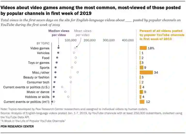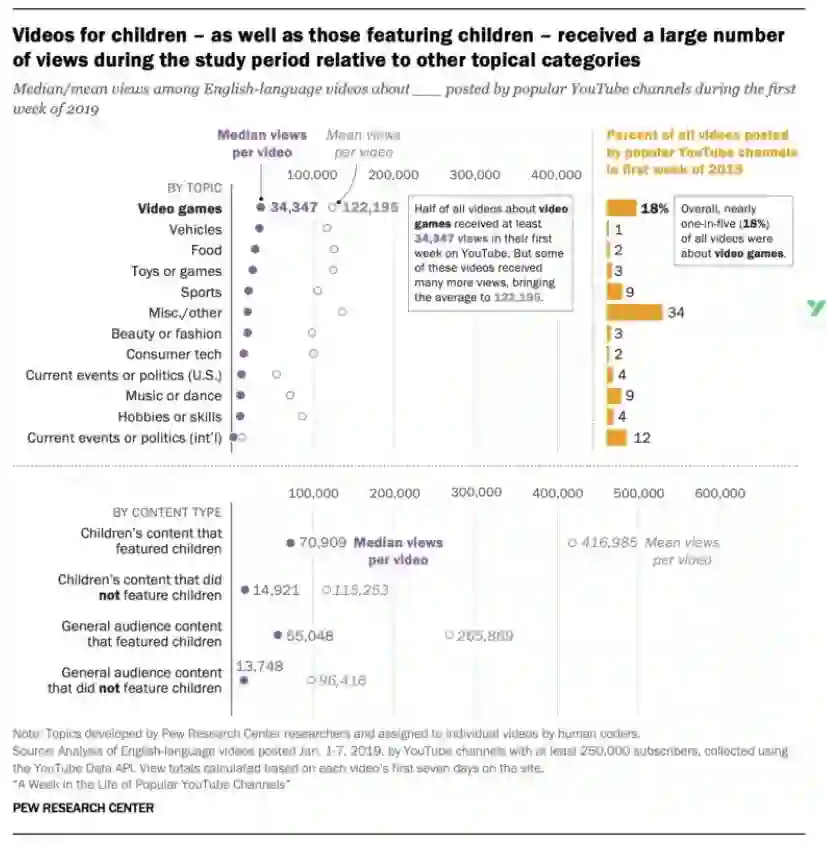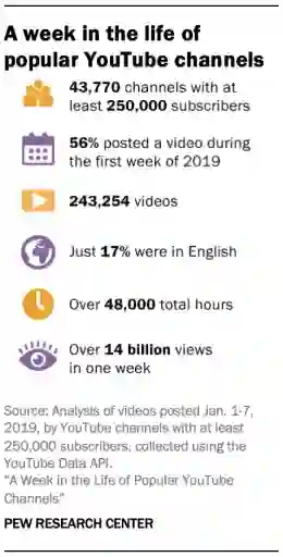 皮尤研究院(Pew Research Center)在7月底发布了一份对YouTube上4万多名粉丝数超25万的博主的研究,相比于方法论,
