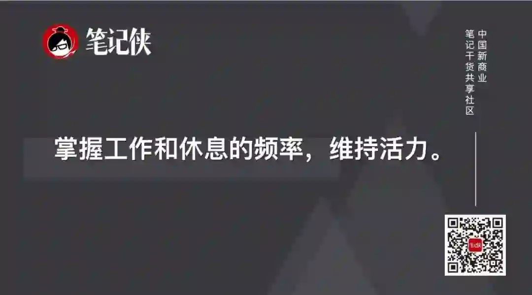 Tip 2:掌握工作和休息的频率,维持活力。在每45分钟或一小时后快速充电休息,释放上一个任务的紧张和焦虑,然后蓄势待发进行下一项任务。
