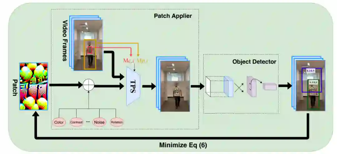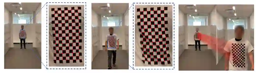 最近的一些工作例如 Simen Thys 等人(Fooling automated surveillance cameras: adversarial patches to attack person detection)通过将对抗样本打印到一个纸板上挂在人身前也可以成功在特定环境下攻击目标检测器,但是却没有 T 恤上的图案显得自然且对对抗样本的形变和运动中的目标没有进行研究。