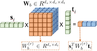 Bilinear Tensor Layer. 双线性层中包含一个参数张量,参数张量中的每个切片矩阵可以视为是一种修辞关系的表示,因此通过双线性层得到的多维连贯性向量就表示了多种修辞关系的概率。