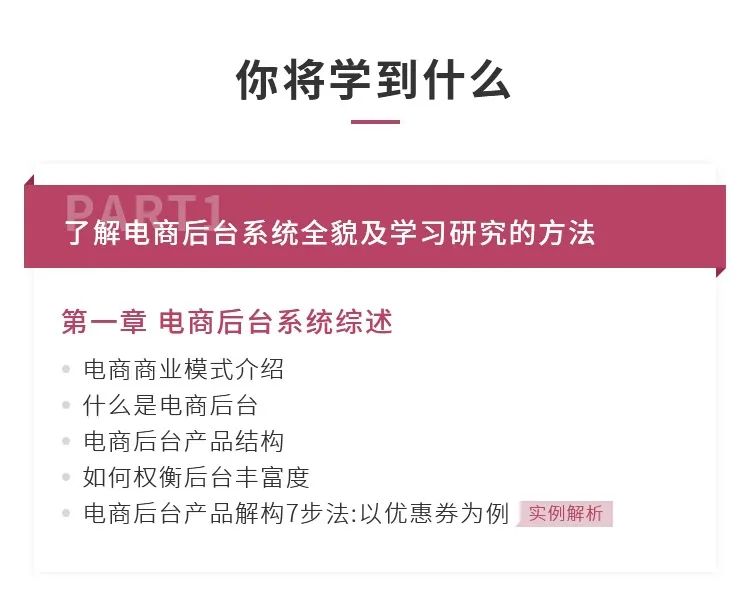 不仅会传授给你一套成熟的电商后台设计思路,更会告诉你如何从产品前端去倒推后台逻辑,实现举一反三快速学习的方法。