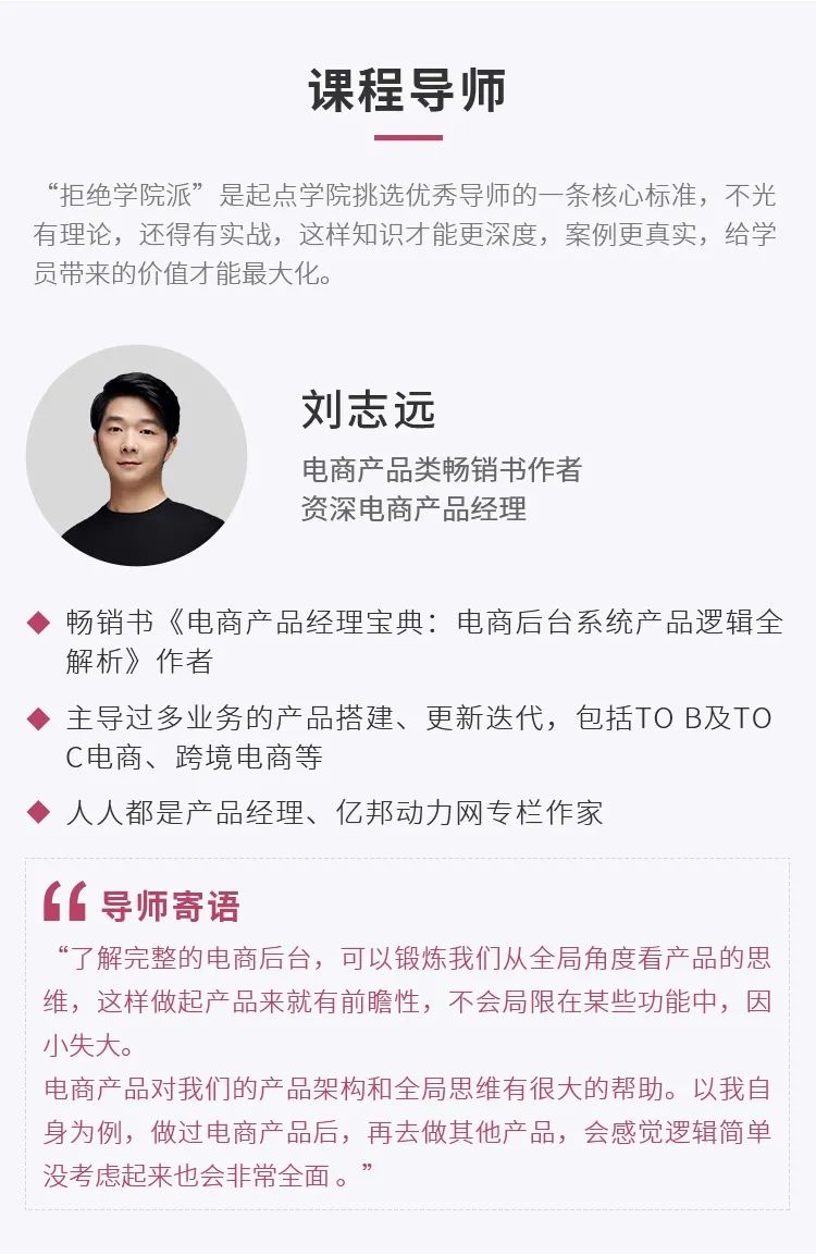 值得一提的是,这门课程的内容,不仅适合各个发展方向的电商产品经理,对非电商类后台产品设计也有不小的借鉴意义。