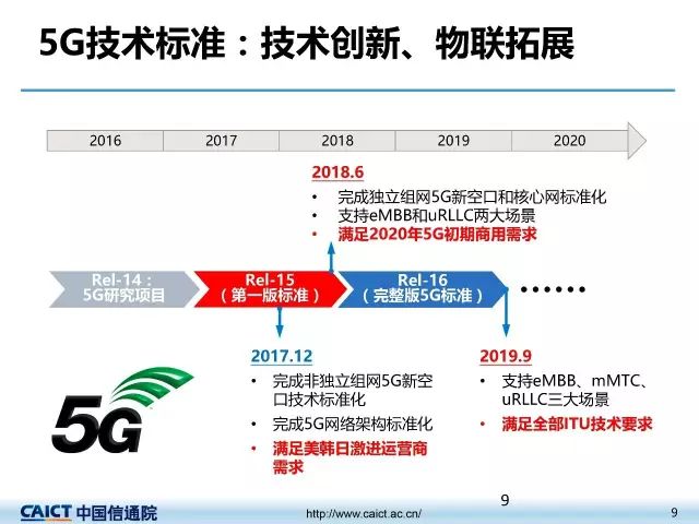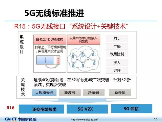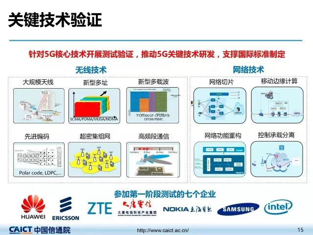 为了做好阶段一与阶段二的衔接,2016年我们就已经完成了对5G关键技术的验证工作,包括我们国家主要推动的一些创新型的5G技术,如先进多制、先进编码、高频技术等;网络方面包括网络切片、边缘计算、网络功能重构和控制承载分离等。