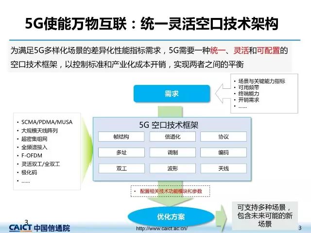 “从这三大类场景中可以看到,第一阶段商业应用主要围绕在移动互联网和一部分能力的高可靠、低时延的场景。未来5G的发展目标是为了解决物联网,能够实现5G作为通用技术承载多种业务。物联网整个发展很大问题就是碎片化问题,无论是在无线接口还是核心网络的资源方面,如何能创造一个5G的技术架构满足物联网具有很大的挑战。”