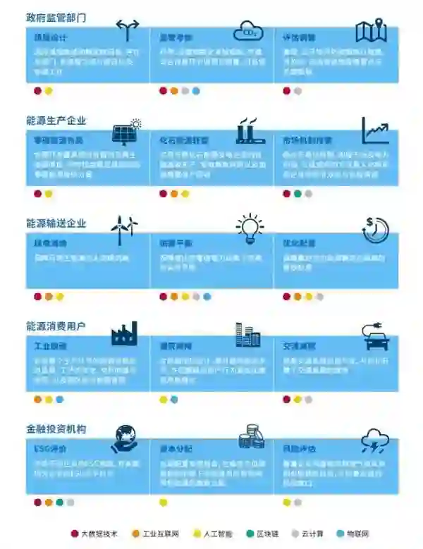 对于能源消费企业,需要利用工业互联网、物联网、大数据技术采集、存储、处理能耗信息,提高合规能力及碳资产管理水平,并基于人工智能技术监测及优化能源消耗行为,提升用能效率减少碳排放。