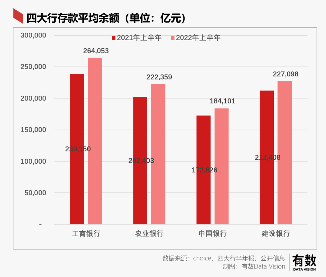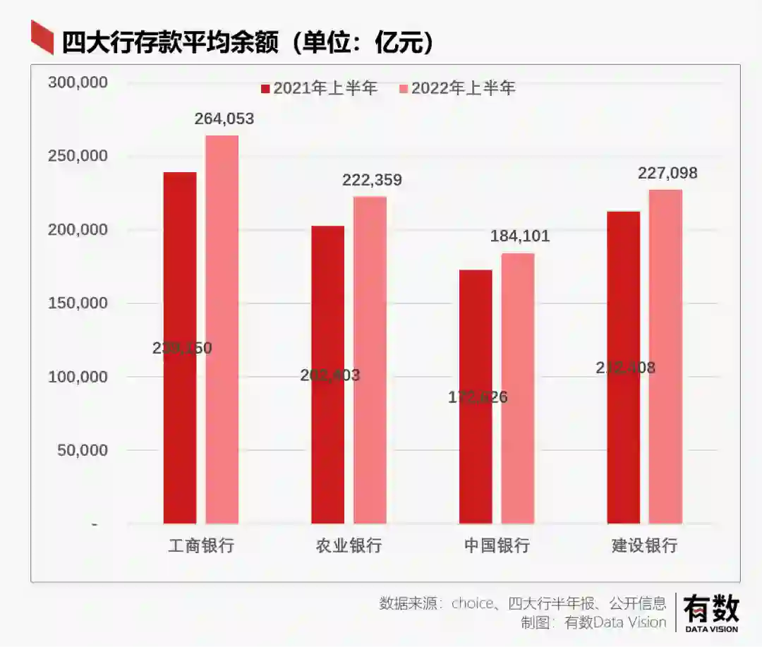 联名潮的另一面是各大银行的存款越来越多。以传统四大行为例--工,农,中,建存款平均余额相较去年同期,分别增加了2.5万亿,2.0万亿,1.1万亿,1.5万亿,合计数可以买下整个科创板。