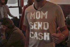 还有纽约的智能服饰公司 SwitchEmbassy,他们的产品之一是能连手机的T恤,你可以自己改变衣服图案,发出来自最心底的呼唤: