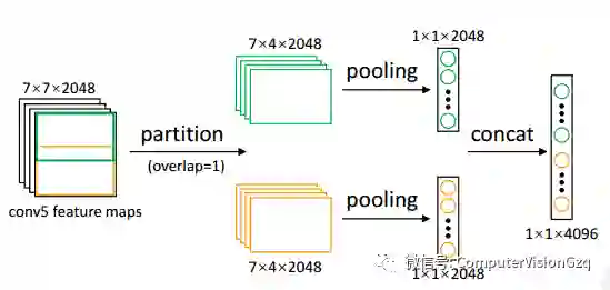如图4所示,LMP先把ResNet-50的CONV5特征按overlap为一个像素的方式划分成P(图4中P为2)个部分,然后分别对P个部分做Global Max Pooling (GMP),最后concatenate P个pooling的结果作为最后的图像描述子。