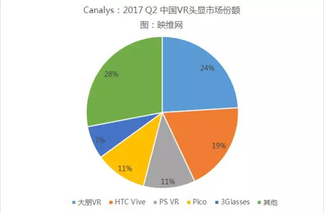 Canalys报告显示,大朋VR已经取代HTC成为中国发货量最大的VR头显厂商,其在2017年Q2季度的发货量为1.8万台,同比增长30%。HTC Vive的出货量为1.4万台,下滑6%。索尼排名第三,PSVR头显在中国的发货量为9千台。据Canalys预计,中国整体VR头显市场季度环比增长25%,发货量达到8万台。