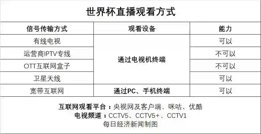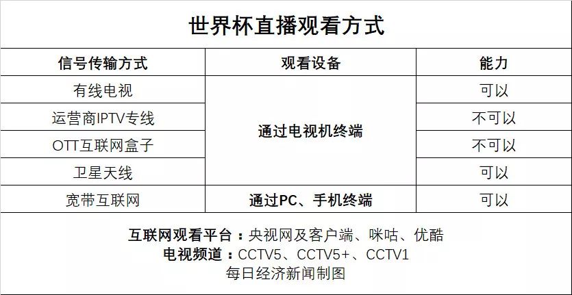 虽然互联网电视和运营商IPTV电视有障碍,但真球迷肯定不会因此放弃世界杯。今年,观看世界杯电视直播的途径依旧还是多样的。