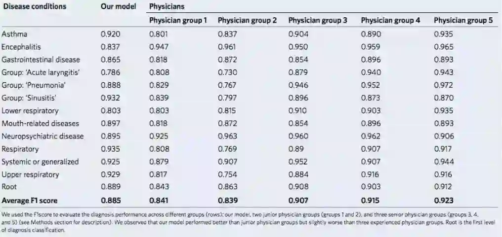 人工智能系统和医疗团队在儿科疾病诊断水平的比较