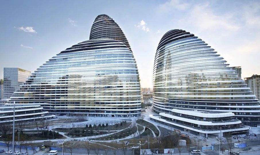 哈迪德的设计一向以大胆造型出名,被称为建筑界的“解构主义大师”。上图是哈迪德设计的望京Soho中心,更加淋漓尽致地体现出她的设计风格。解构主义建筑在形态上表现为散乱破碎,不遵循古典主义的轴线和秩序,将建筑分解然后再整合。从几何观点而言,哈迪德将曲面分解成柔顺平行的曲线族,这样的曲线族就是曲面的一个叶状结构,每一条封闭曲线被称为是一片叶子,然后再将叶状堆叠成整体形状。