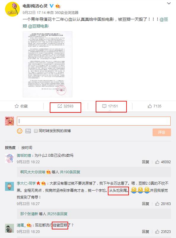 不过需要交涉的除了豆瓣,还有微博等渠道,这部电影的微博官微目前已经收到了几万条评论,但基本上都是让毕导更加不开心的言论,不提也罢,不看也罢。