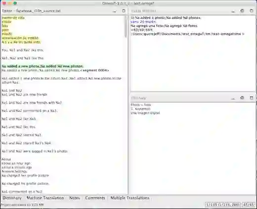 OmegaT CAT 工具。在这里您可以发现翻译记忆(模糊匹配)和术语回顾(术语表)特性。OmegaT 在 GPL v3 许可证之下发布。