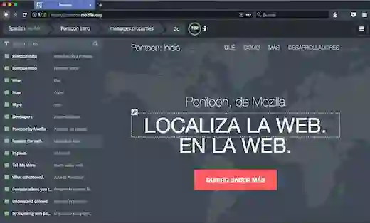 如上是 Mozilla 的 Pontoon 翻译管理系统用户界面。使用所见即所得编辑方式,您可以在上下文根据语境翻译内容,在翻译的同时保证质量。 Pontoon 在 BSD 3 句版许可证(新款或修订版)之下发布。